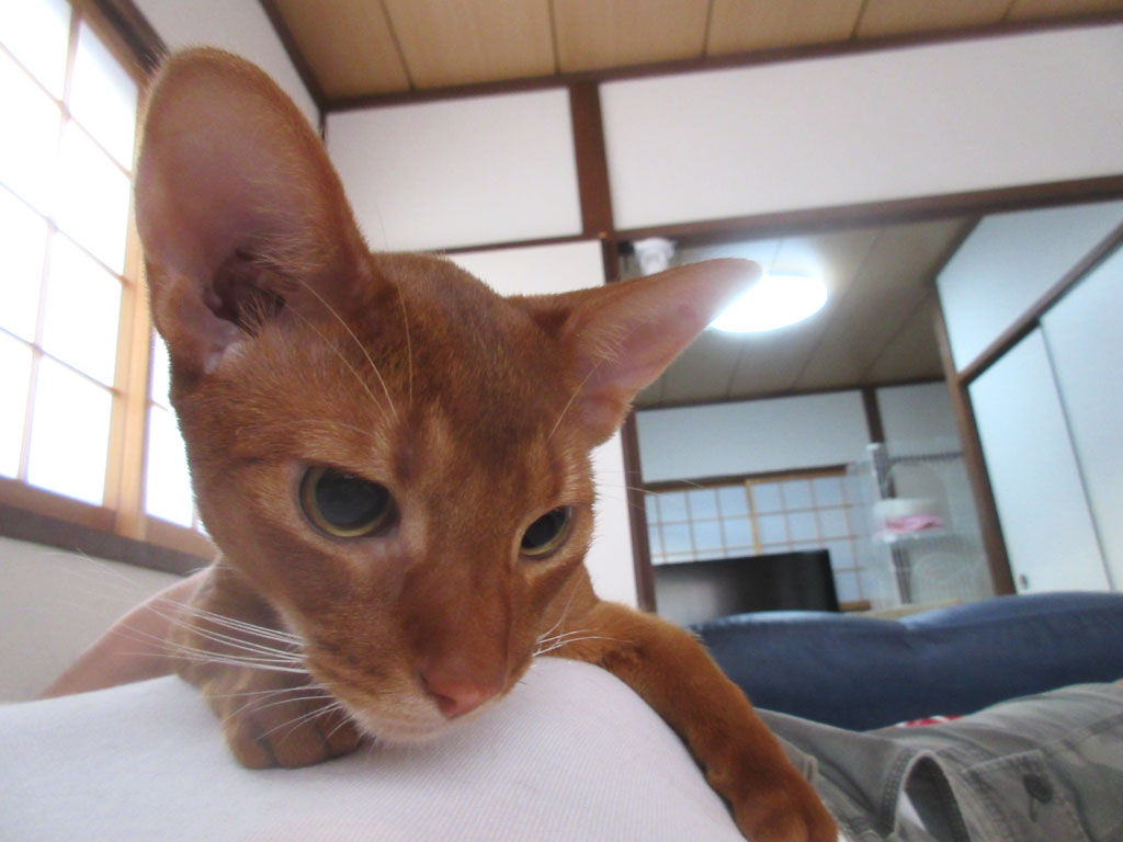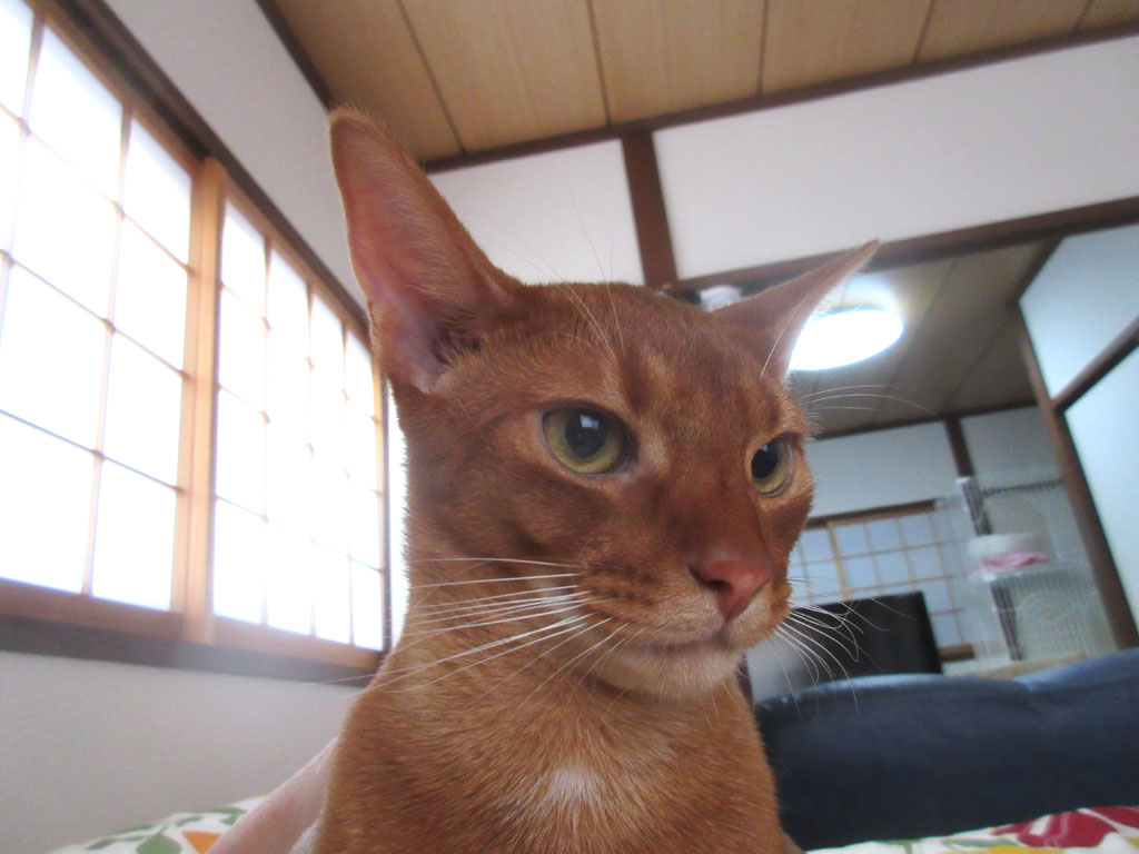 アビシニアンって、この、顔の眉間の所の柄によって、顔が怖く見えるのだと思うのですが、アビのすけの場合は、ライオンの様なレッドのカラーなので、何となく、ライオンの様な王者の風格すら、漂っている様に見えますね…、手前味噌ですが…。