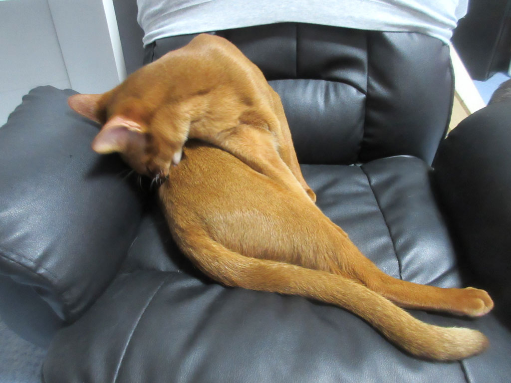 早速、必死にイソジンを塗られた所を舐め舐めするアビのすけ…、イソジンは舐めても害はないので良いのですが、折角、傷を早く治す為のイソジンを舐め取ってしまったら、治りが遅くなってしまいますよぉー、アビのすけくーん…。