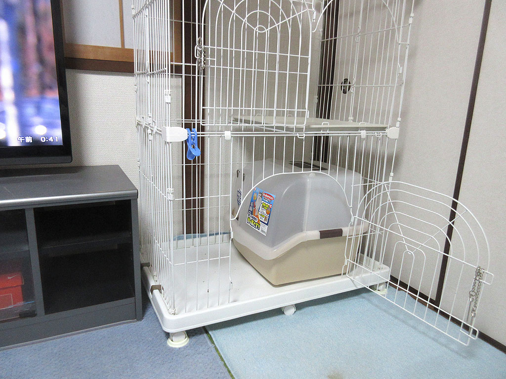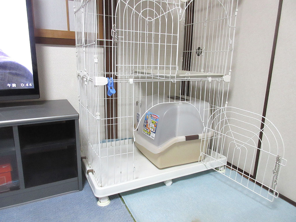 0時44分の猫トイレ。一応、1枚目の23時44分の写真から1時間が経った、0時44分の猫トイレの写真もアップしておこうと思いますが、この5分後位に、私は寝る為に、テレビを消して、ロシ子を抱っこしてベットに入って、そして電気を消して、アビのすけがトイレから出て来るか、スマホのWebカメラで見てたのですが、すぐにアビのすけ、トイレから出て来ましたよ…、何でだろう…?