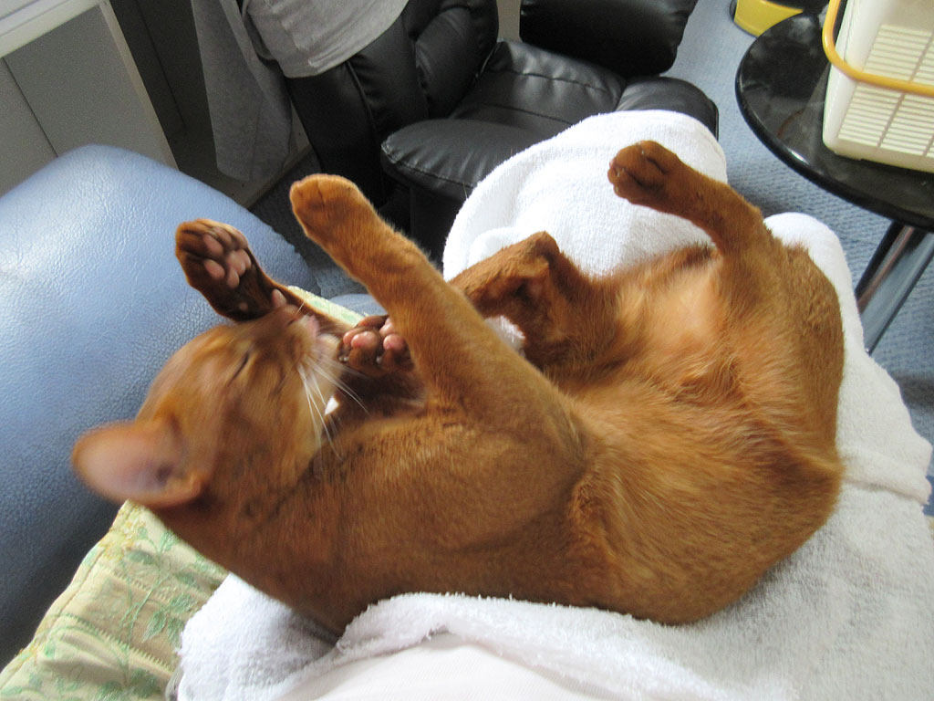 以前、アビシニアンと一緒に生活をなさっている方から、大人になるにつれ、ぷーんとした臭い匂いはしなくなるとコメントを頂いたのですが、まさにそのお言葉通りになって来ましたよ。