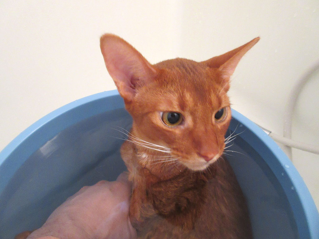 そしてこれは、今日のアビのすけのシャンプーの様子…、今から、バケツの湯船にアビのすけを浸ける所…。