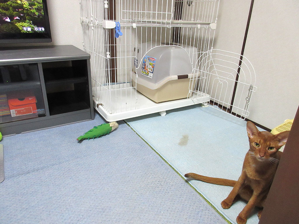 そしてこれは、おとといの晩の事ですが、相変わらずアビのすけは、晩も更けて来ると、トイレにボチボチ歩いて行って、トイレの中で寝ているのです。