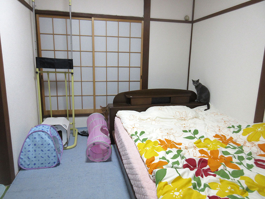 ロシ子がこっちに戻って来たので、私がベットの方に行って見てみると…。