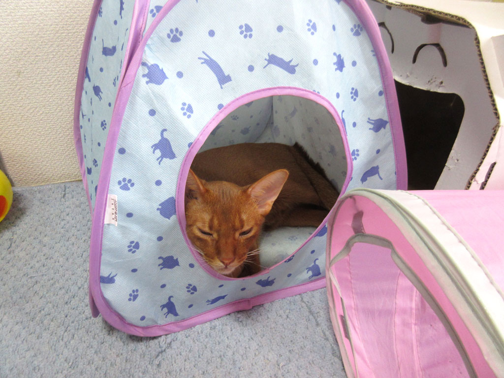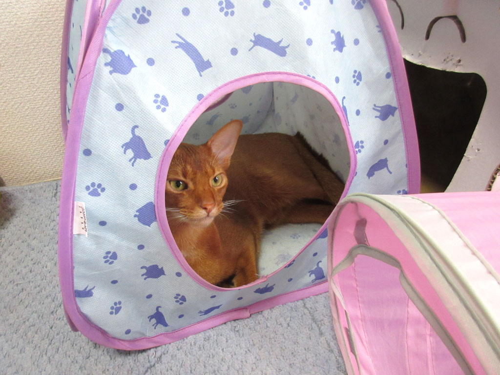 アビのすけ君、キャットテントの中でご機嫌ですね(^_-)-☆