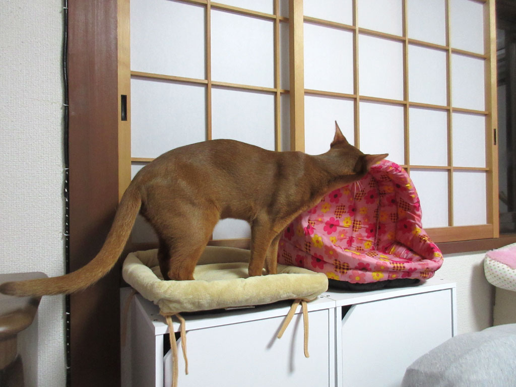 New猫ベットに興味津々、アビシニアンボーイのアビのすけ。