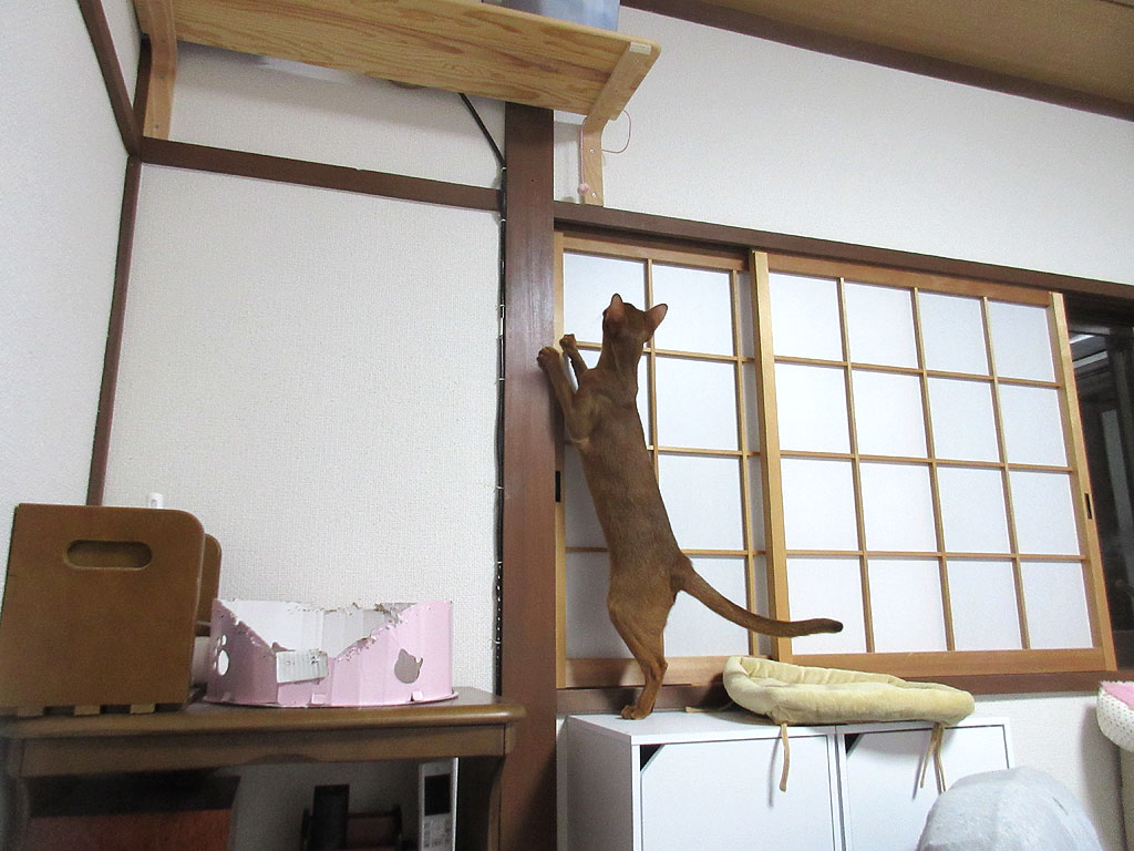 と思ったら、アビのすけの様子を見てたロシ子が、突如、私も!って感じで、ジャンプして、暫くの間、鴨居にぶら下がっていたのです…、やんちゃなロシ子、大歓迎…、嬉しい…!