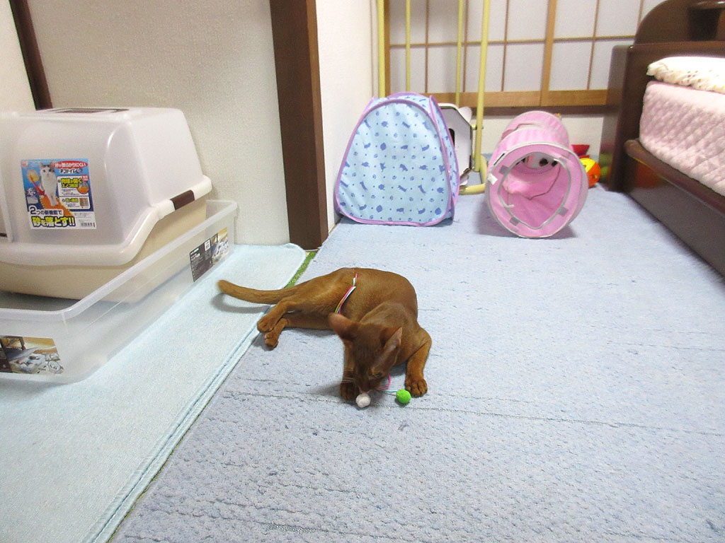 ロシ子ちゃんが自分で遊んでいた姿が記憶にあったので、アビのすけ君ならもっと活発に遊ぶと思っていました。