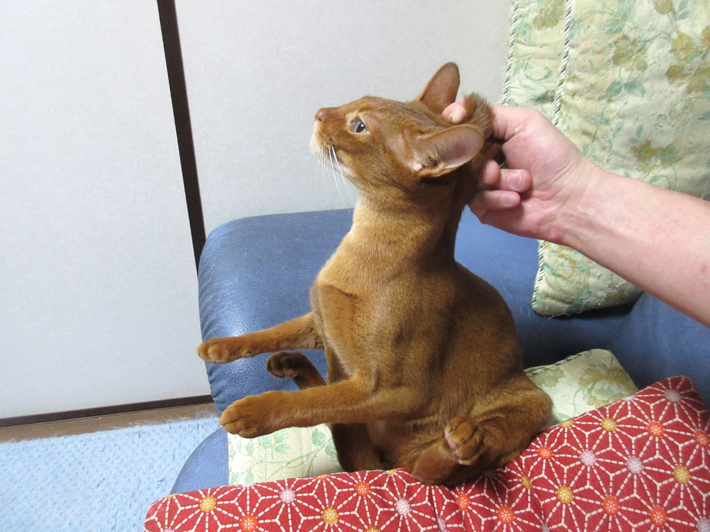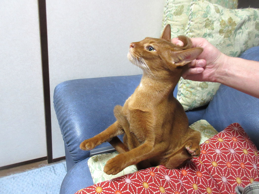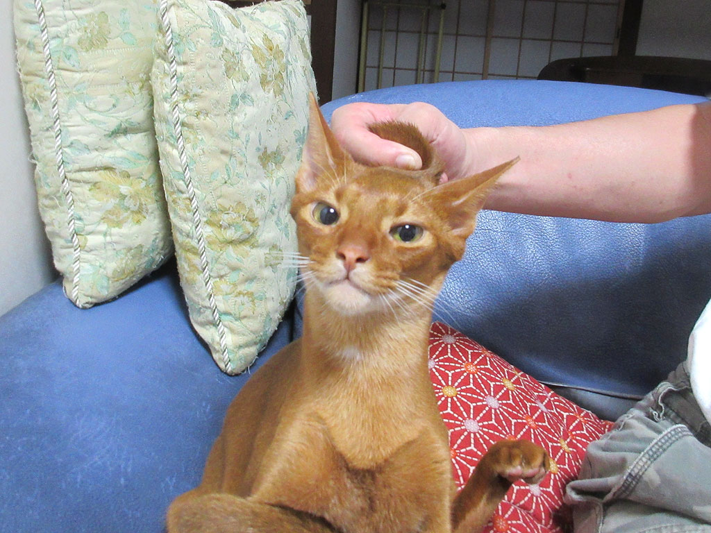 これ、昨日のアビのすけの写真なのですが、この体勢で1時間位、寝てましたよ…、本当におバカで笑わせてくれる、アビシニアンの男の子です。