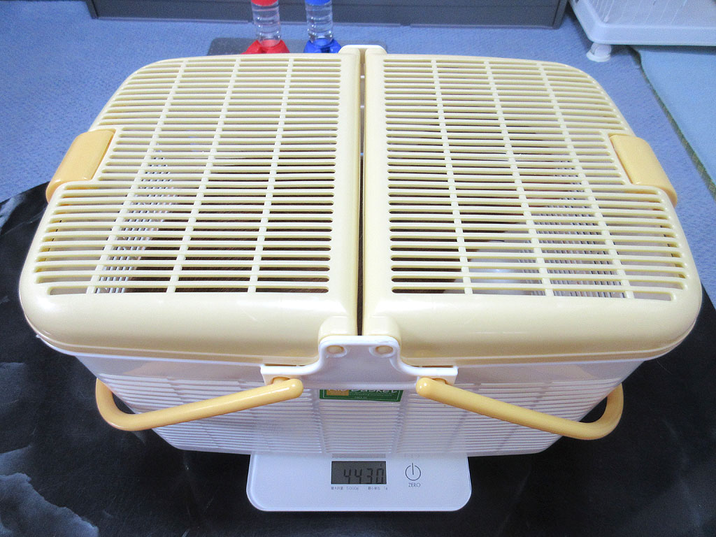 そしてこれは、昨日の朝のアビのすけの体重測定の風景です。