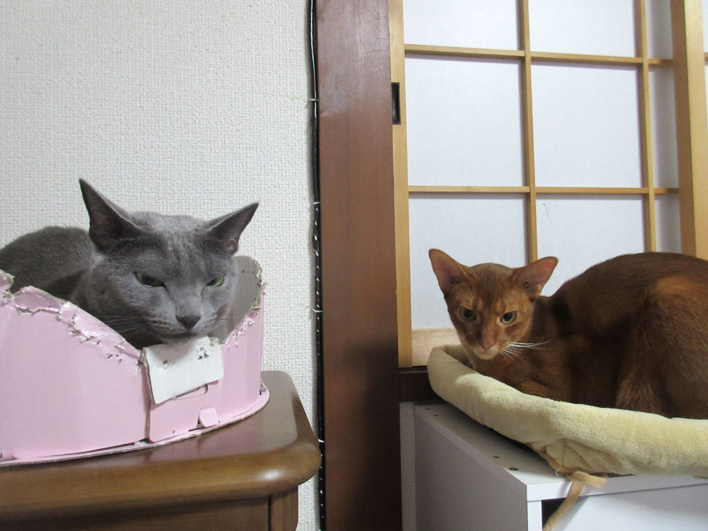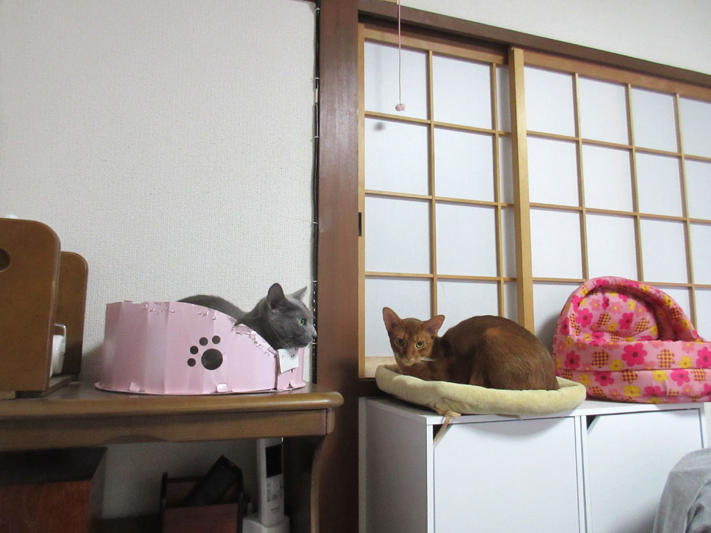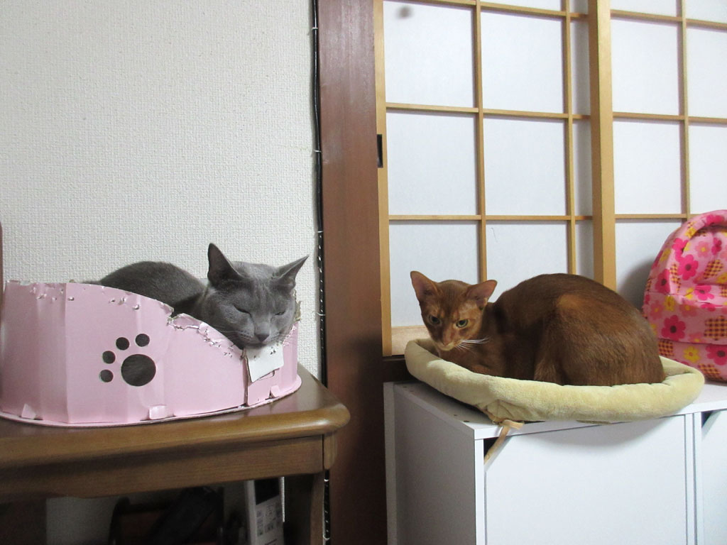 このまま、ロシ子とアビのすけの良い関係が続けば、いつか、一緒に引っ付いて寝てくれる可能性も大いにありそう…、今年の冬、寒くなって来た頃に、一緒に引っ付いて寝てくれる様な事があれば、私にとっては出来過ぎな猫達ですが、そこまで期待をしてあげるのもかわいそうなので、密かに期待しておく事にしようと思っています。