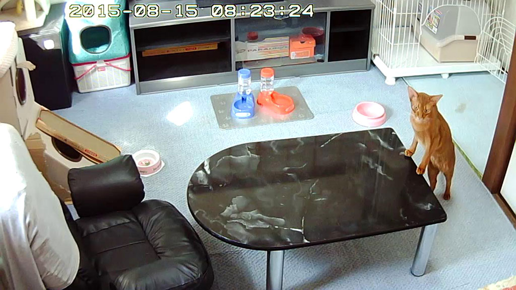 朝ご飯を食べ終えたアビのすけは、ローテーブルに手を掛けて立ち上がって…、今日も朝からとっても元気なアビのすけでしたよ。