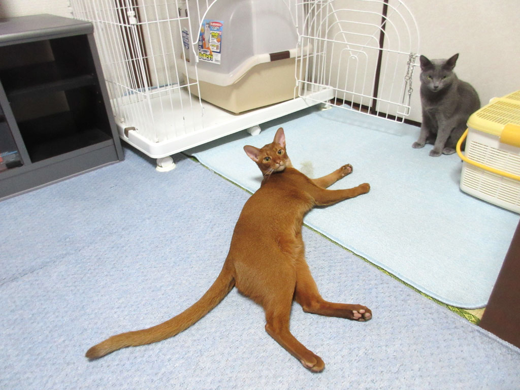 アビのすけは、多分、まだ太ってはいないと思うけど、シュッとしたアビシニアン君よりも、お腹周りが太い様な気がする…。
