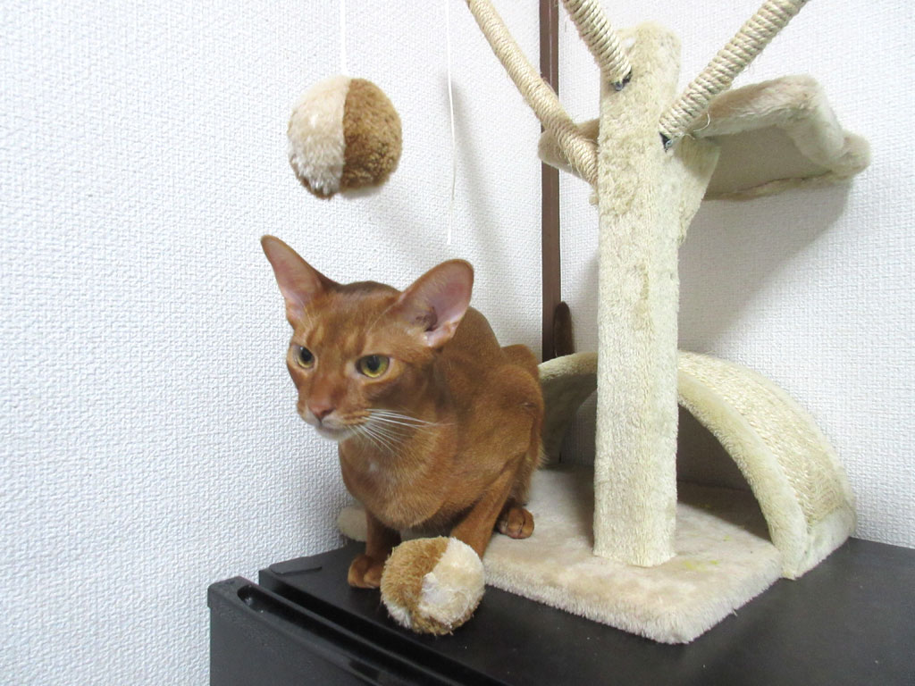 同じ日に、それも数時間も経たない間に、キャットタワーの2つの部分をぶっ壊してくれたアビのすけ…、体力が有り余り過ぎだぁー…。