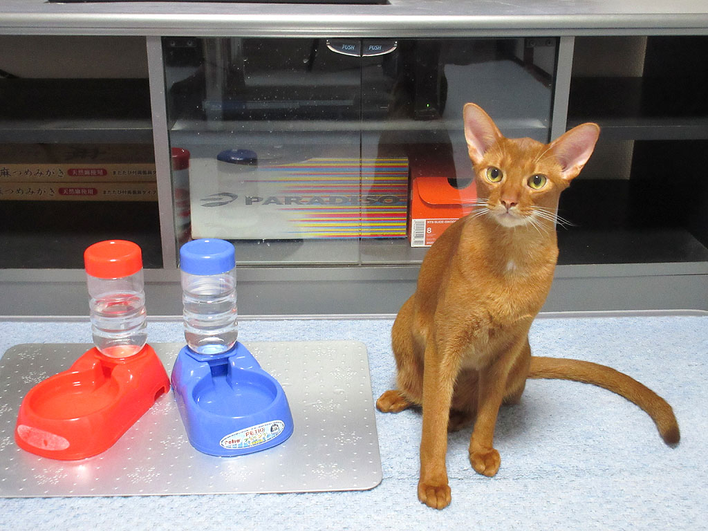 水をよく飲むアビシニアン。そして、水をバチャバチャと飲むアビのすけ…、以前、猫の腎臓病の事でコメントを頂いた事があって、その後、動物病院に行った時、何か、腎臓病にならない様な手立てはないか、先生に伺った所、新鮮な水をたくさん飲ませる事が良いとアドバイスを頂いて…。