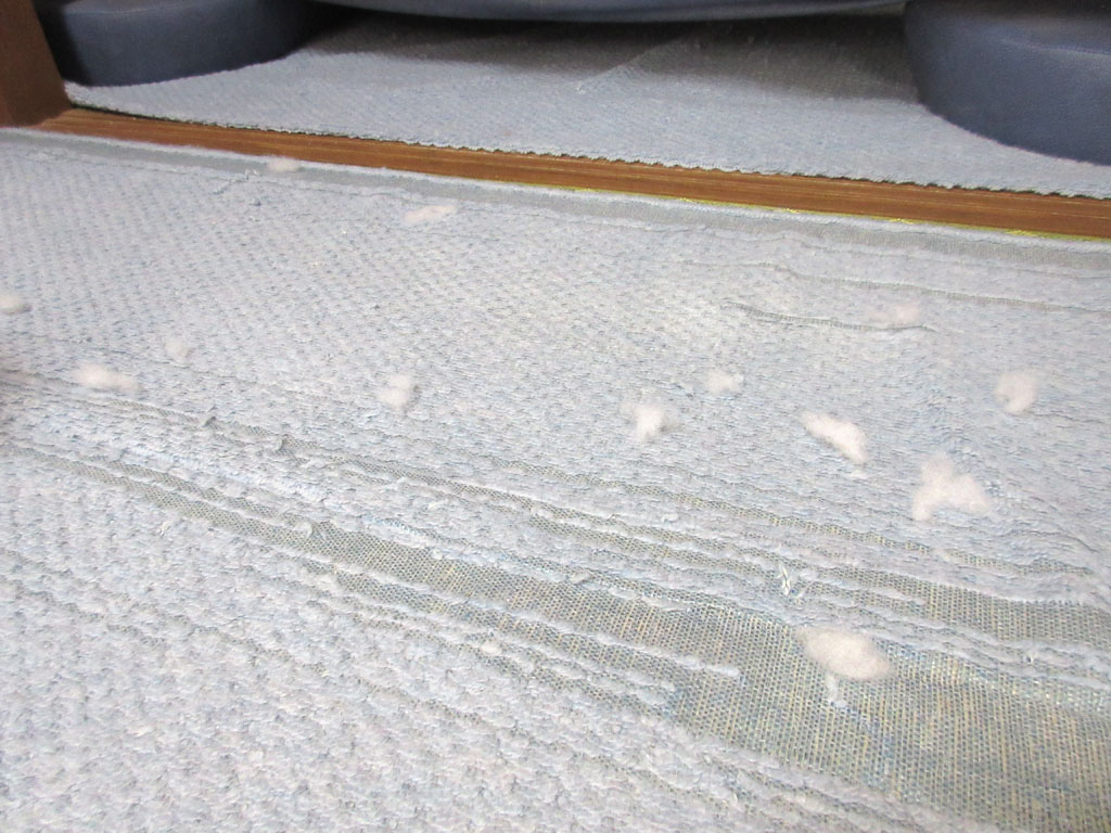 さて、これは昨日の朝6時頃の事、私が起きようとベットから出たら、こんな感じで綿の様な物が撒き散らかされていて…。