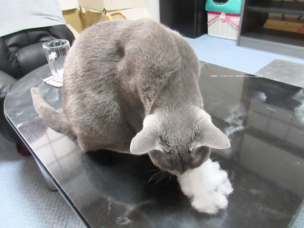 このローテーブルは、横幅は90cmもあるのですが、ここでアビのすけが手をぐぅーって伸ばして、尻尾もピンと伸ばしたら、多分、このローテーブルからはみ出してしまうと思う。