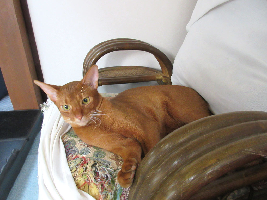 アビのすけは、毎日、夜中に動きまくっているので、いつものアビのすけの寝床である籐の座椅子で、気持ち良さそうにお休み中でしたよ。
