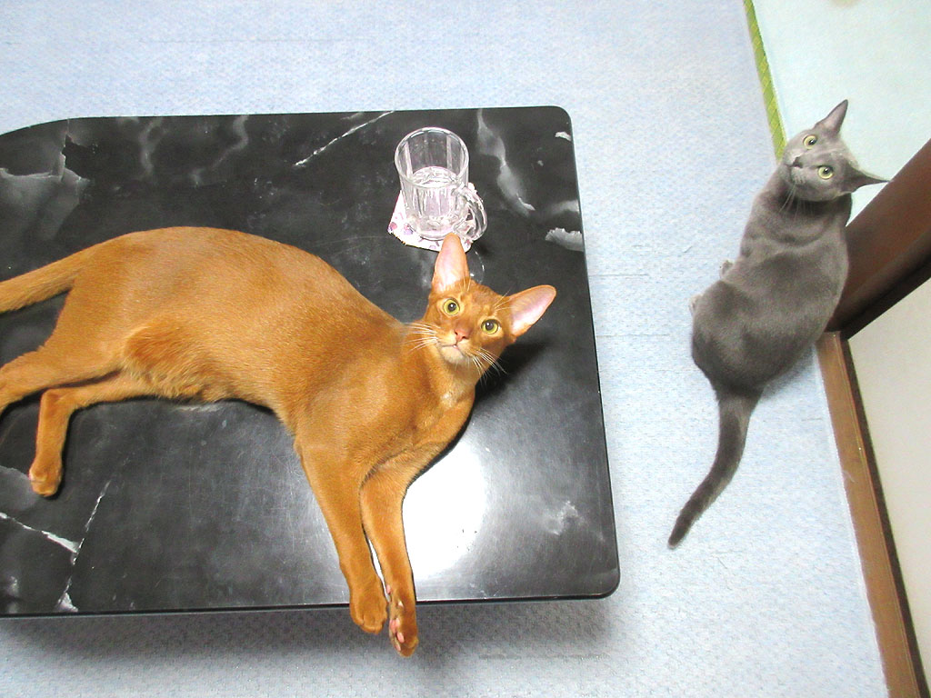 心配性なのかどうなのか…、ロシ子はおとなしいんだけど、女の子だからか、芯はしっかりしているのですが、アビのすけは一見、よく騒いでくれて、やんちゃをしてくれてるのですが、案外、小心猫だったりして…。