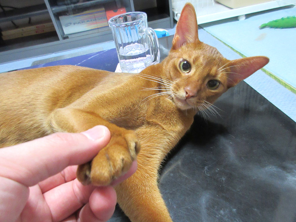 あびのすけ、肉球を触らせておくれ…、握手しよ…、猫の肉球って、本当に気持ちが良いですよね。