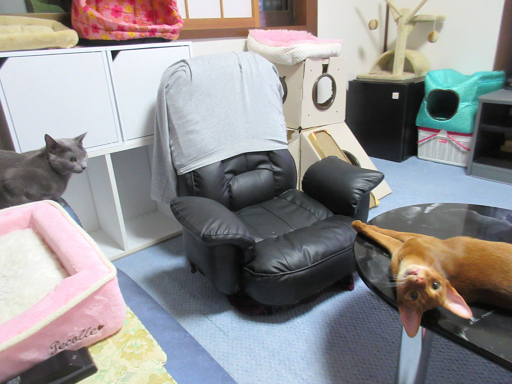 この前、猫たちの運動会の結果、焼酎のジョッキをひっくり返してくれたので、私はまた、焼酎のジョッキをひっくり返されるんじゃないかと、内心、ヒヤヒヤしていたのです。