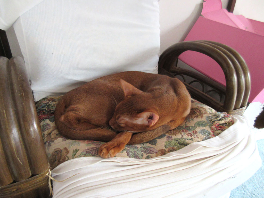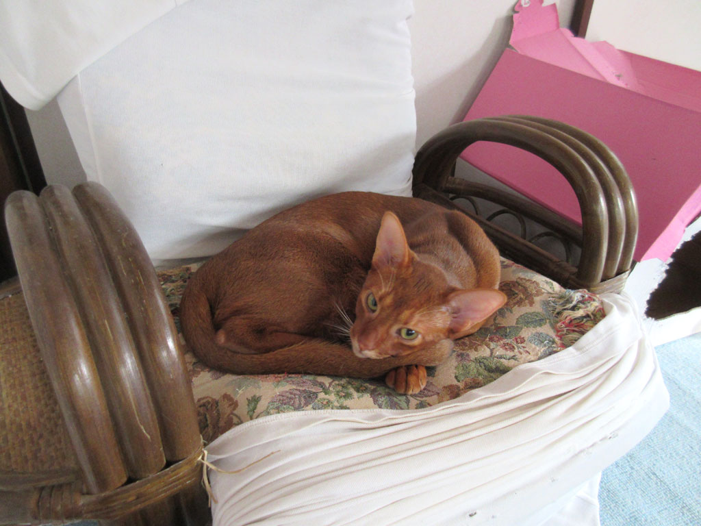 この写真…、6日も前の写真…、晩、相変わらず、一人でやんちゃをしていたアビのすけ…、とにかく元気なアビシニアンの男の子…。