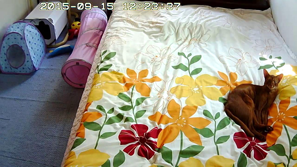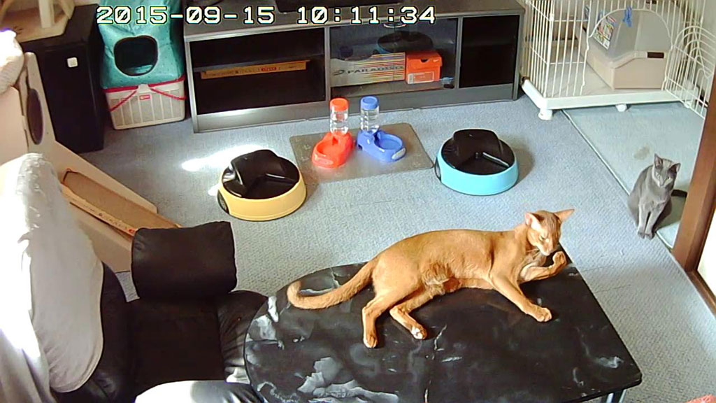 そしてこれは、今日のお昼頃のアビのすけ…、ここで寝転んでいたんですけど、Webカメラを動かしたら、こっちを向いてくれました。