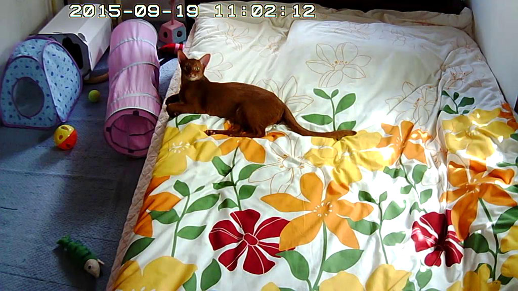 そしてこれは、今日の午前中のアビのすけ…、Webカメラを動かしたら、相変わらず、食い付いてくるアビのすけ…、いつまで経っても、好奇心が旺盛なアビシニアンのやんちゃ坊主です。
