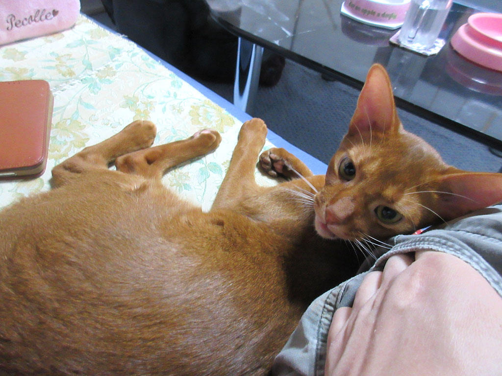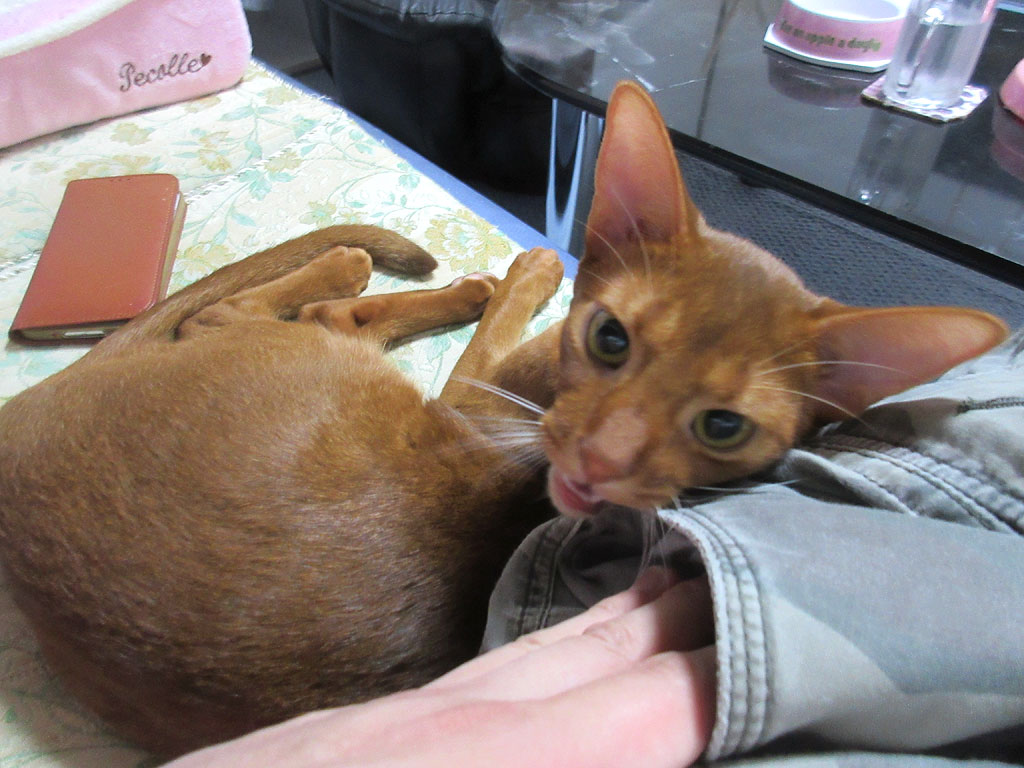 懲りないアビシニアン。本当にアビのすけは懲りないアビシニアンの男の子…、この愛嬌のある所が、アビのすけの良い所だけど、本当に本当に、いつも、ちょこちょこしてるなぁー、君は…。