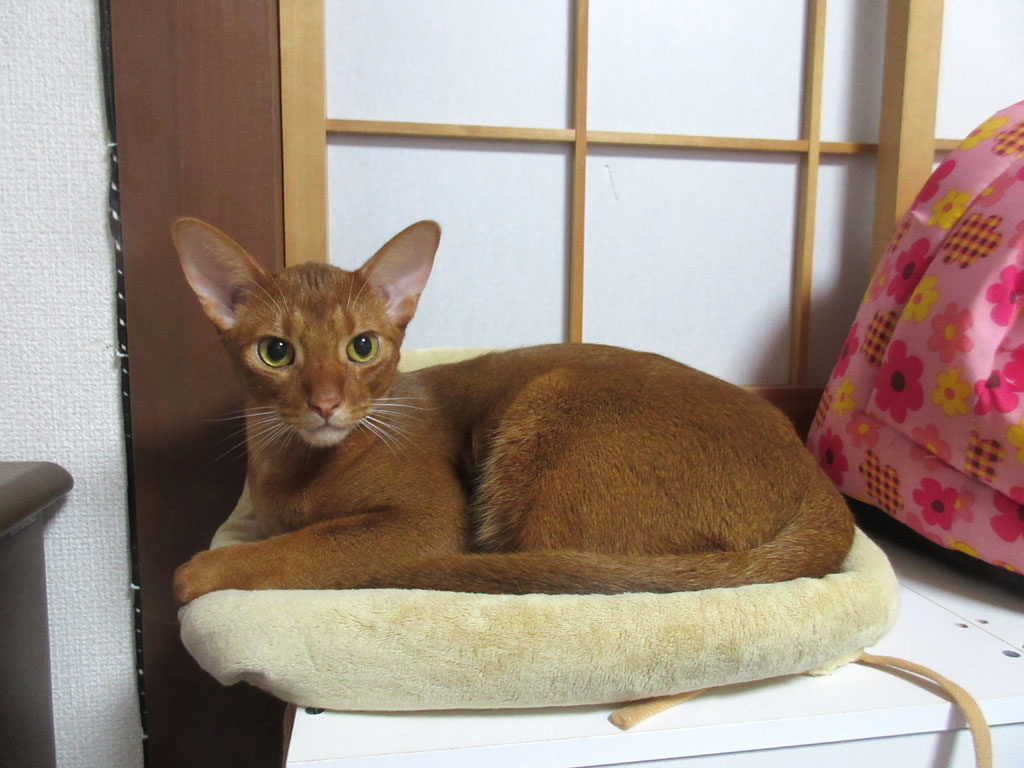 穏やかなアビシニアン。この顔も、とってもかわいく写ってるアビのすけ…、やんちゃなアビのすけも良いけど、静かに生活を送りたい私からすると、穏やかな、優しいアビのすけの方が良いなぁー…、ちょっとだけ癒されたぞ…。