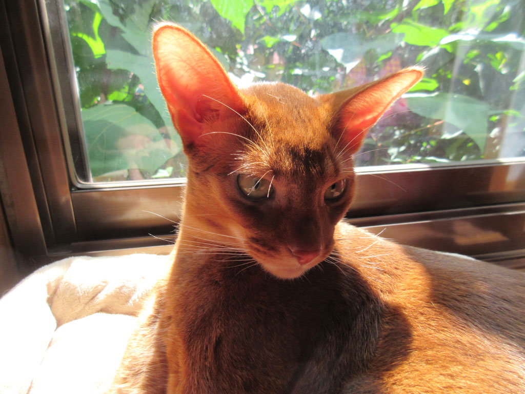 アビシニアンは、絶世の美女、クレオパトラで有名な、エジプト出身の猫ちゃんなので、やっぱり、美形で彫りが深いのかなぁー…。
