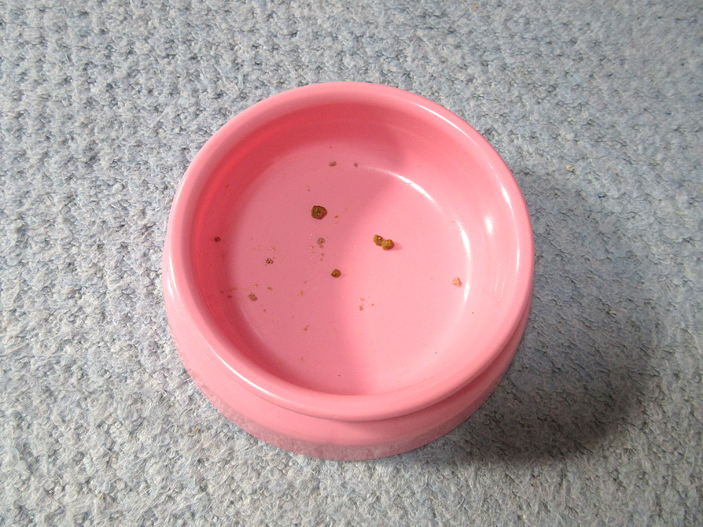 これ、昨日のアビのすけの朝ご飯を食べ終わった後のお皿なのですが、最近はアビのすけ、こんな感じで、朝ご飯の時とか、晩ご飯の時に、少しだけご飯を残す事があるので、ほんの少しだけ、アビのすけのご飯を減らしてるんだけど、どうなんだろう…?