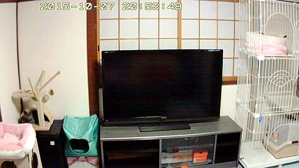 そしてこれは、昨日の晩の我が家の風景…、最近のロシ子の夕方の居場所はここで、これは、アビのすけにケージの猫ベットを横取りされてしまったから…。