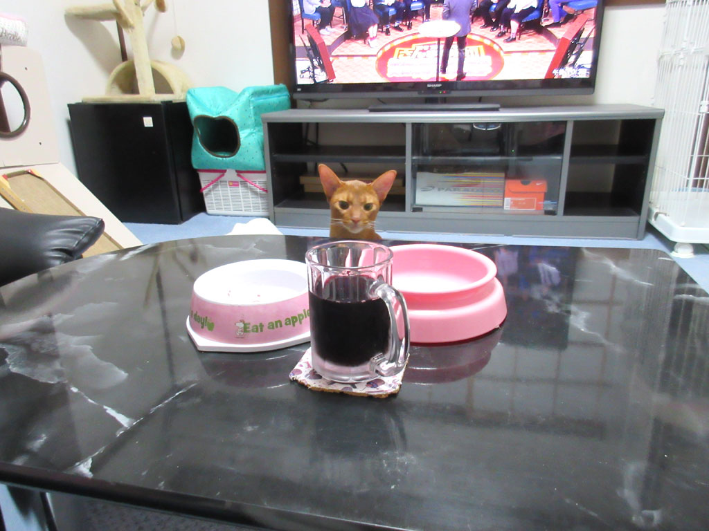 そんな事を思いながらも、アビのすけがジョッキの中に顔を突っ込もうとした瞬間に、私は雷を落としてやって、アビのすけはめっちゃ焦って、飛んで逃げて行ってしまいましたよ…、本当に面白い奴…。(笑)