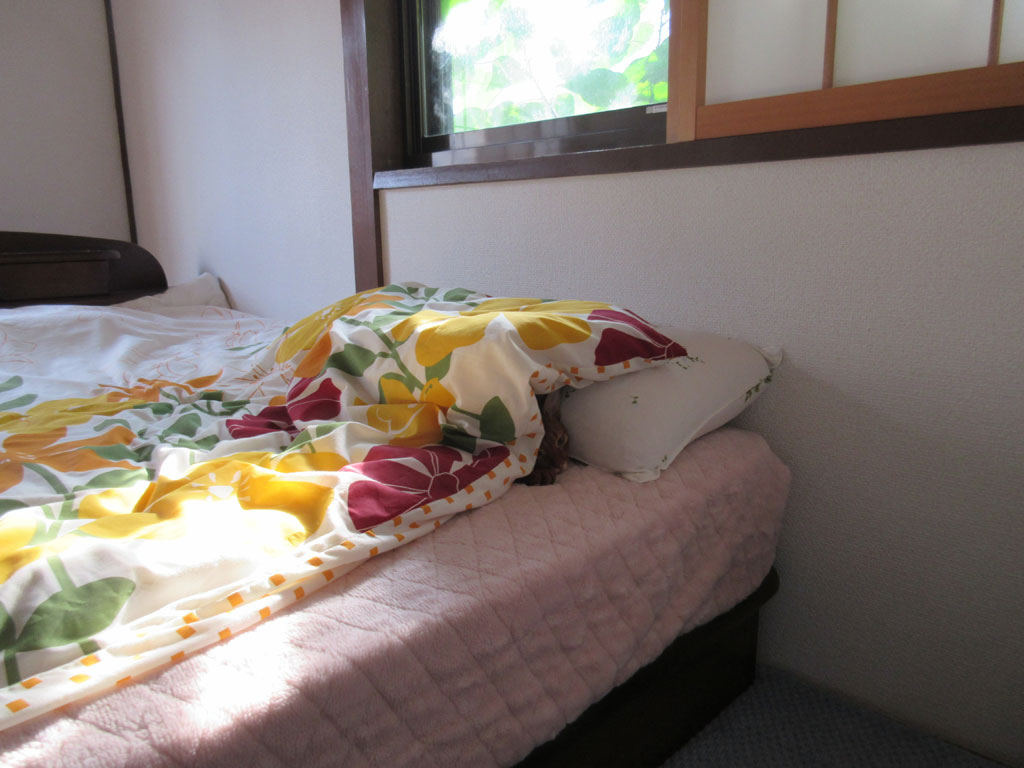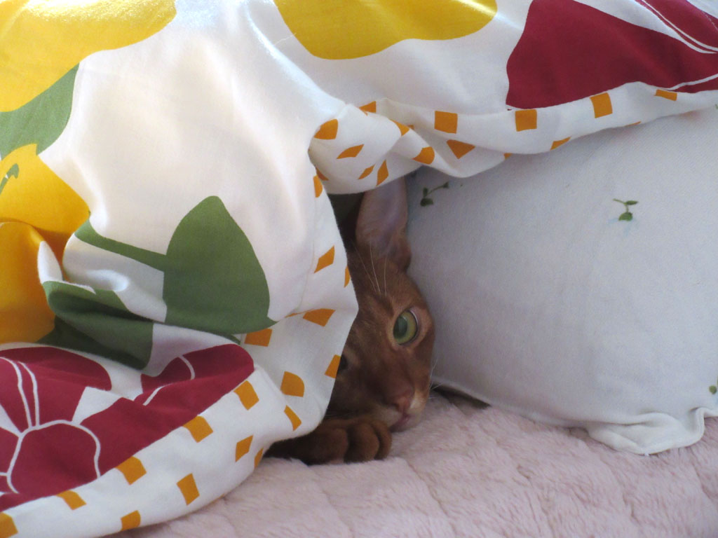 そしてこれは、3日前のアビのすけの様子…、ロシ子にちょっかいを掛けて、ベットから追い出してるくせに、その後、自分が布団の中に潜って、暖かくして寝てるなんて、なんて勝手な奴…!