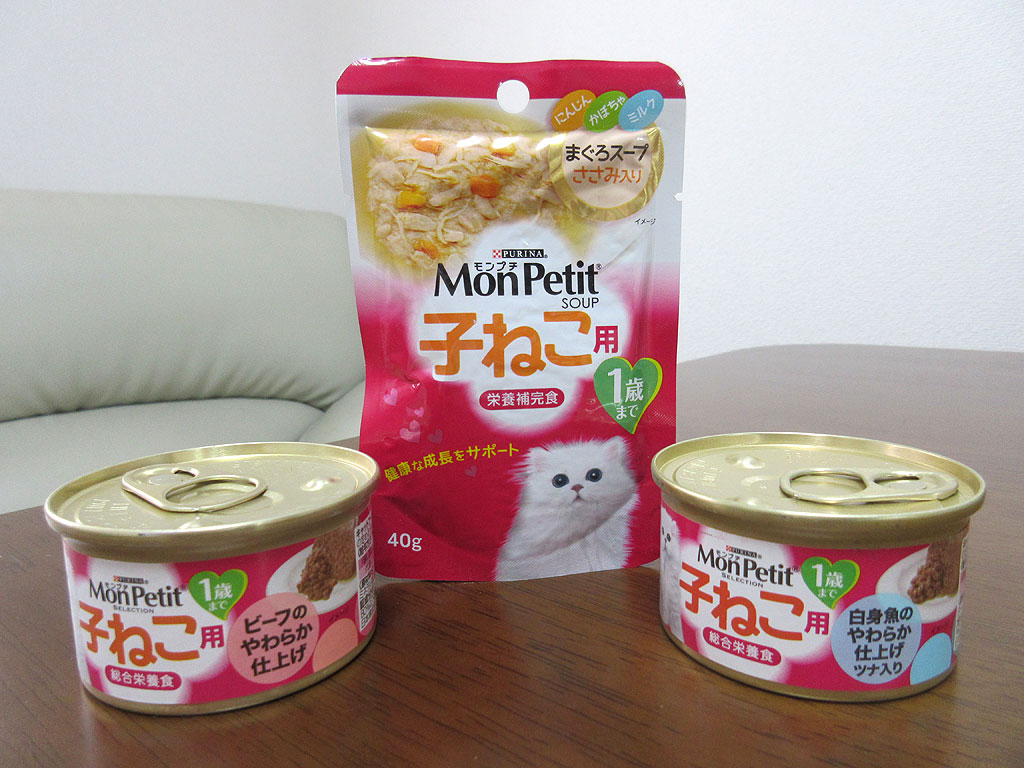 そうなのです…、計算して購入したつもりだったのですが、モンプチの子猫用のパウチがあと6袋、そして、モンプチの子猫用の缶詰が、各々2缶ずつの合計4缶も残ってて…。