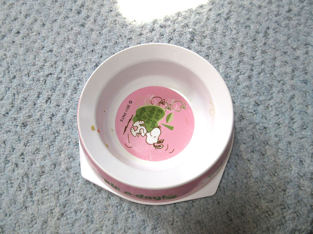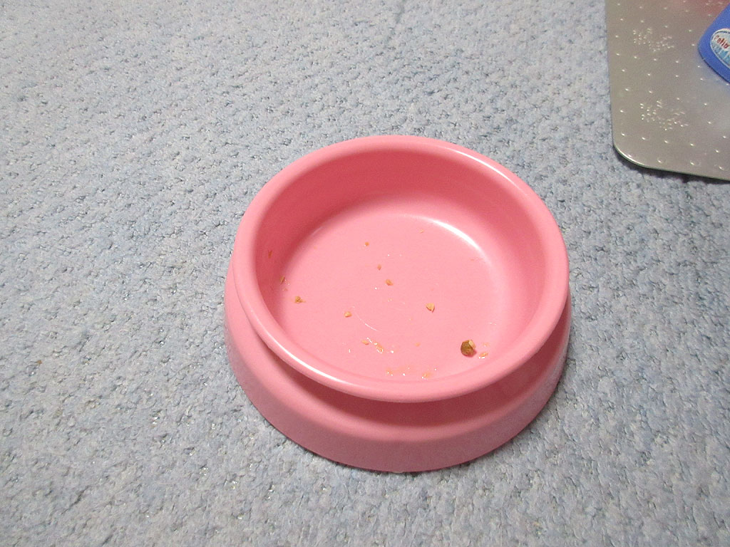 そして、完食をしたアビのすけのご飯のお皿…、アビのすけにしては、きれいに食べてないなぁー…。