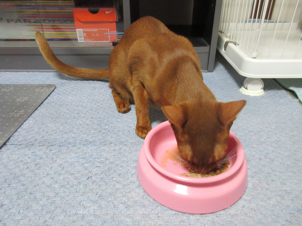 いつも通り、1粒も残さない、食い意地の張ったアビシニアンの男の子。