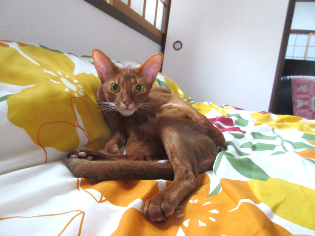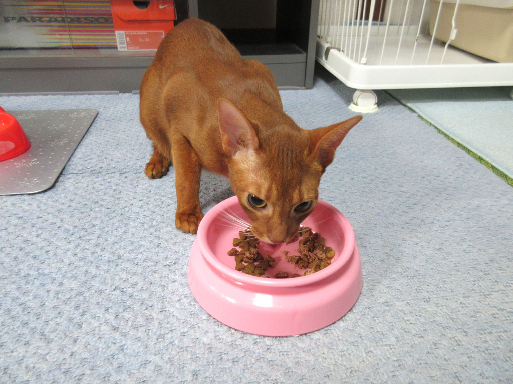 食べ物だったら、何でもガツガツと食べてくれる、食欲旺盛、元気いっぱいのアビシニアンの男の子です。