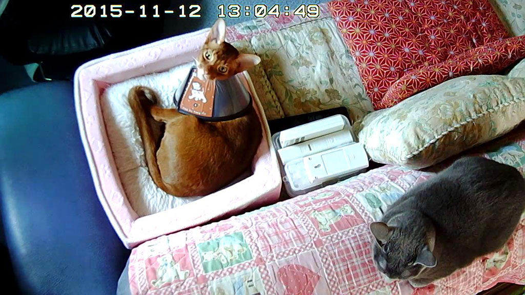 エリザベスカラーをはめられて、鬱陶しそうなアビのすけなのですが、好奇心は変わらずに旺盛で、元気はめっちゃ、元気なのです。