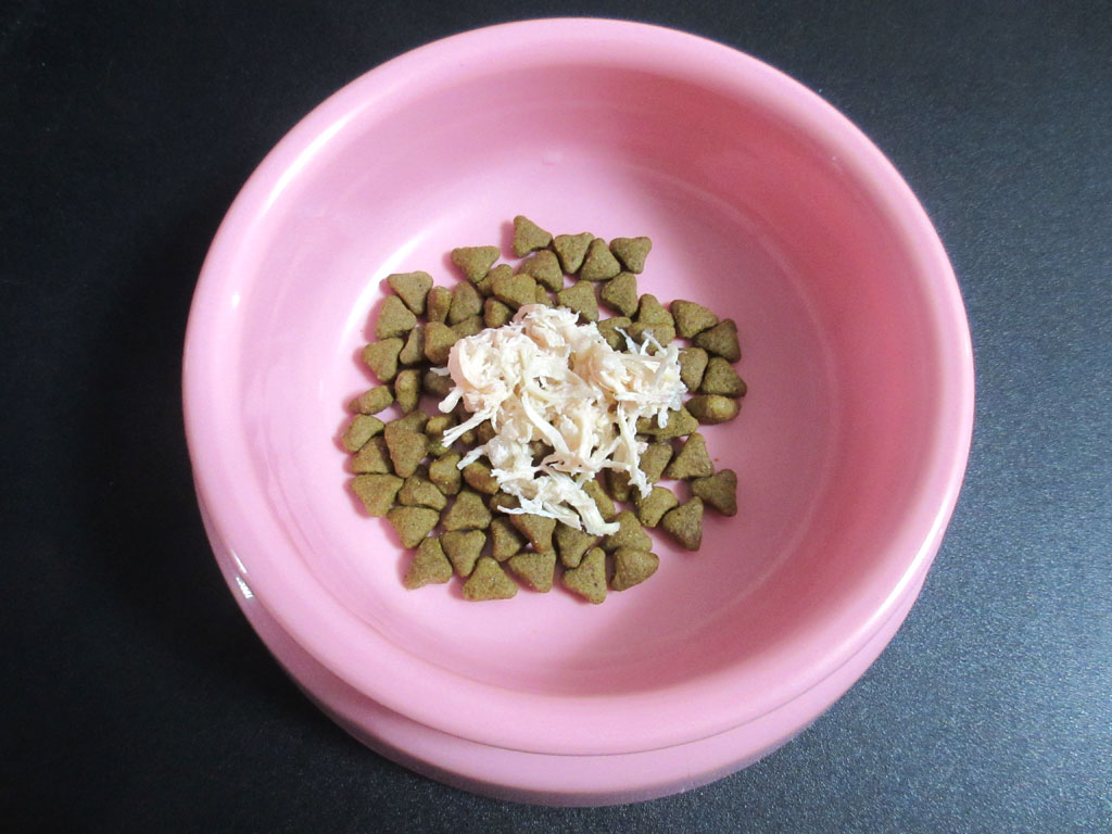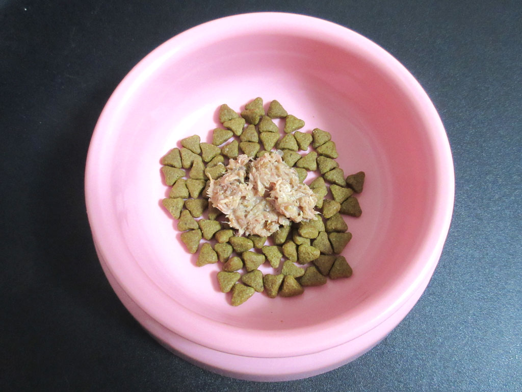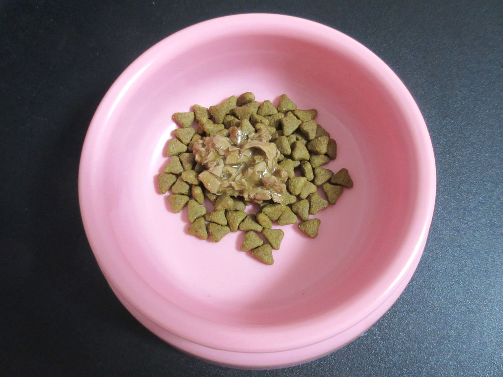 カリカリと合わせて、こんな感じ…、アビのすけは、とっても美味しそうに食べてくれていました。