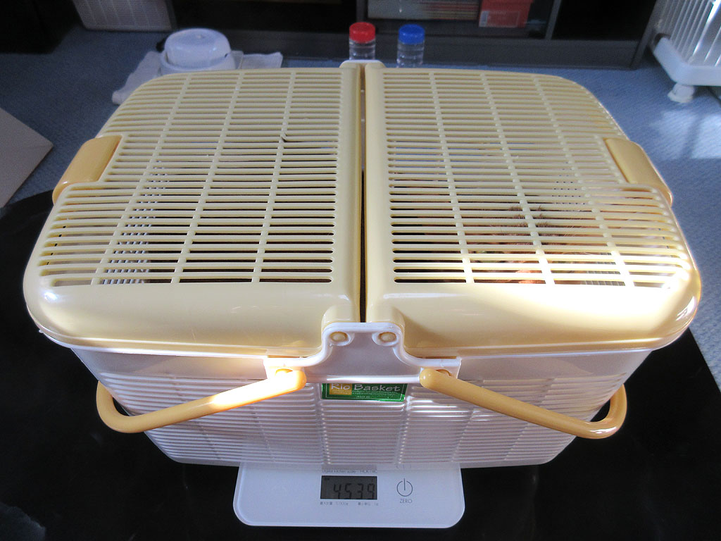 アビのすけの体重測定。そしてこれは、昨日の朝のアビのすけの体重測定の様子。