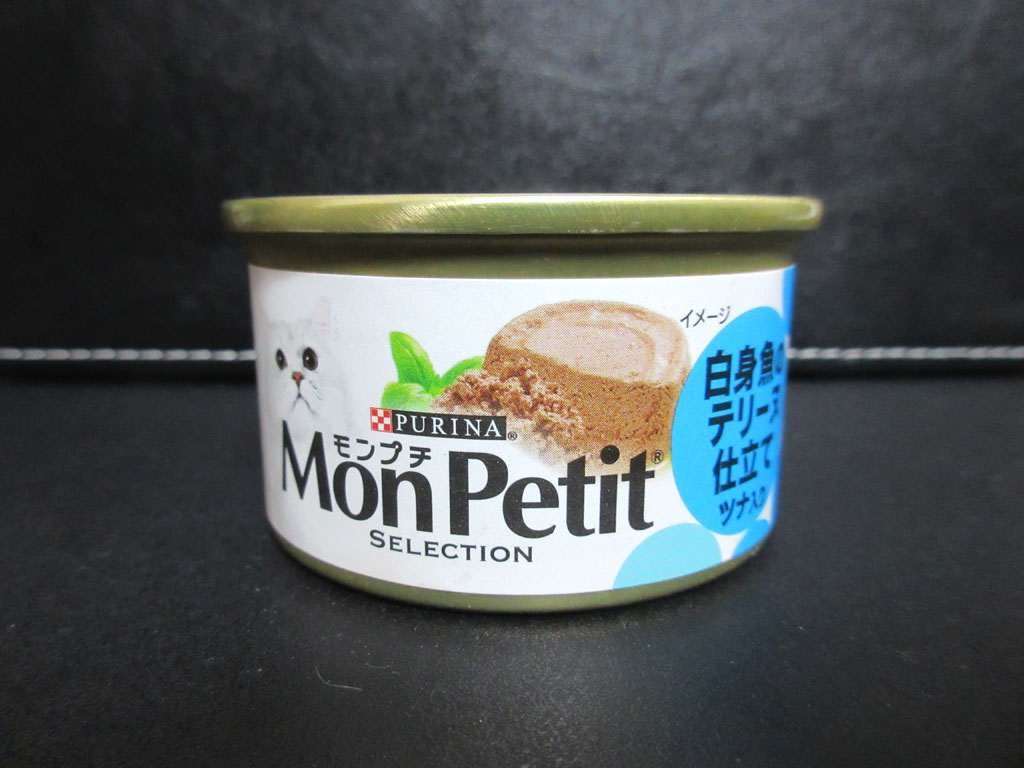 そして最後、これは、今朝からあげてる、モンプチの缶詰、「ツナのほうれん草添え クリーミーソース」です。