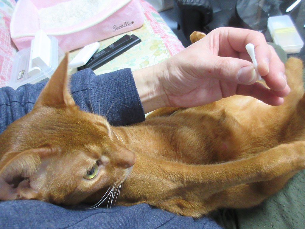 そして、この日の晩から、アビのすけに新しい皮膚炎の薬を塗り始めました。