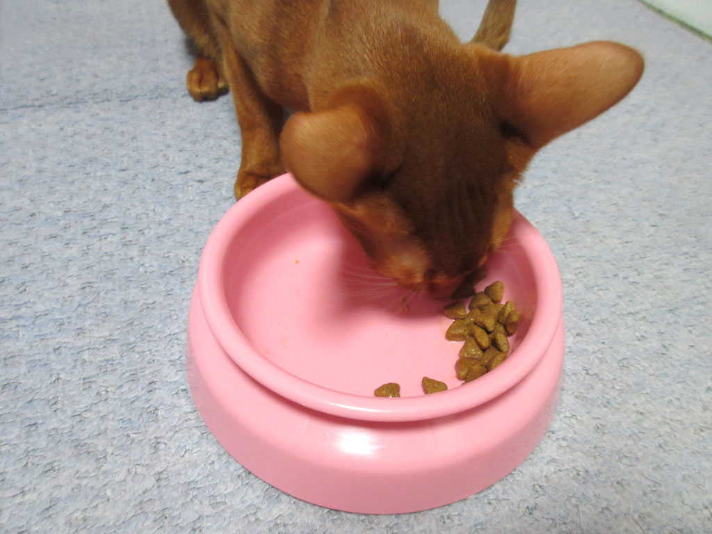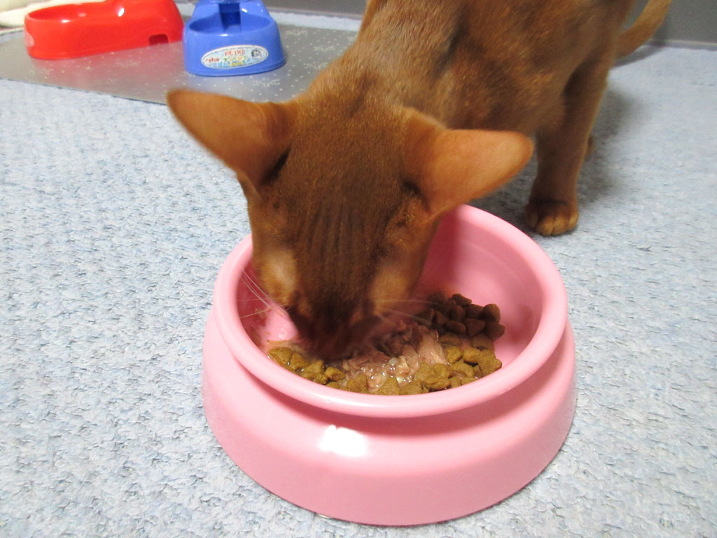 美味しいご飯を食べるアビシニアン。この数日、アビのすけを動物病院に連れて行った事や、アビのすけの皮膚炎の事を書いていましたので、すっかり、写真が溜まっております。