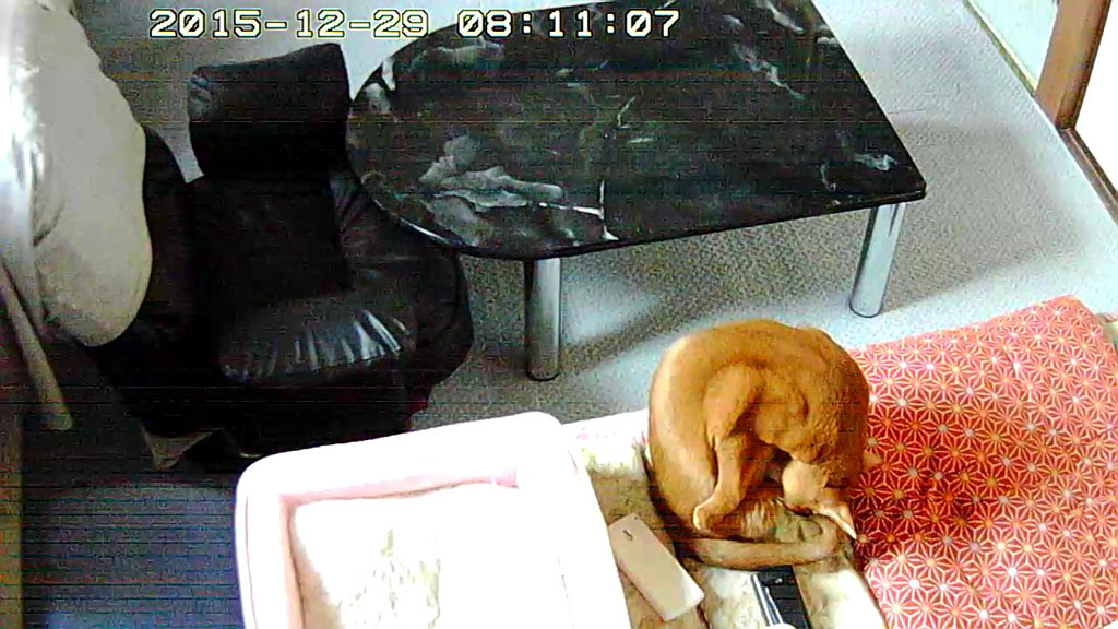 これ、8日も前のアビのすけの様子…、こんな変な格好のままで、数十秒間、アビのすけは微動だに動かず…。