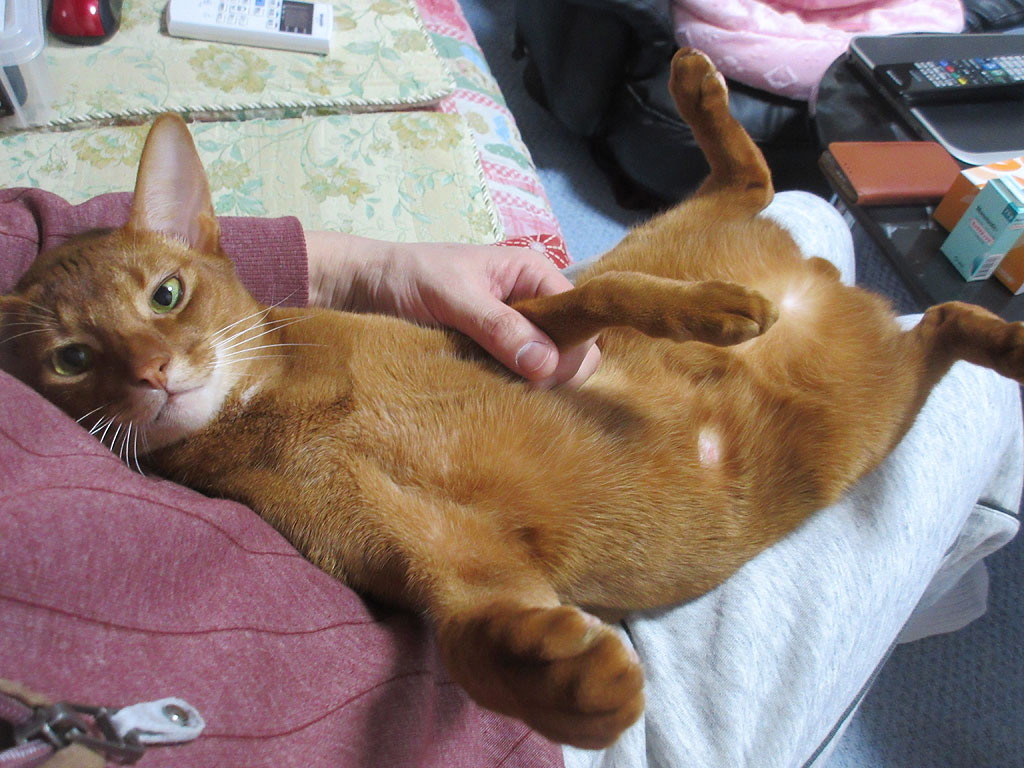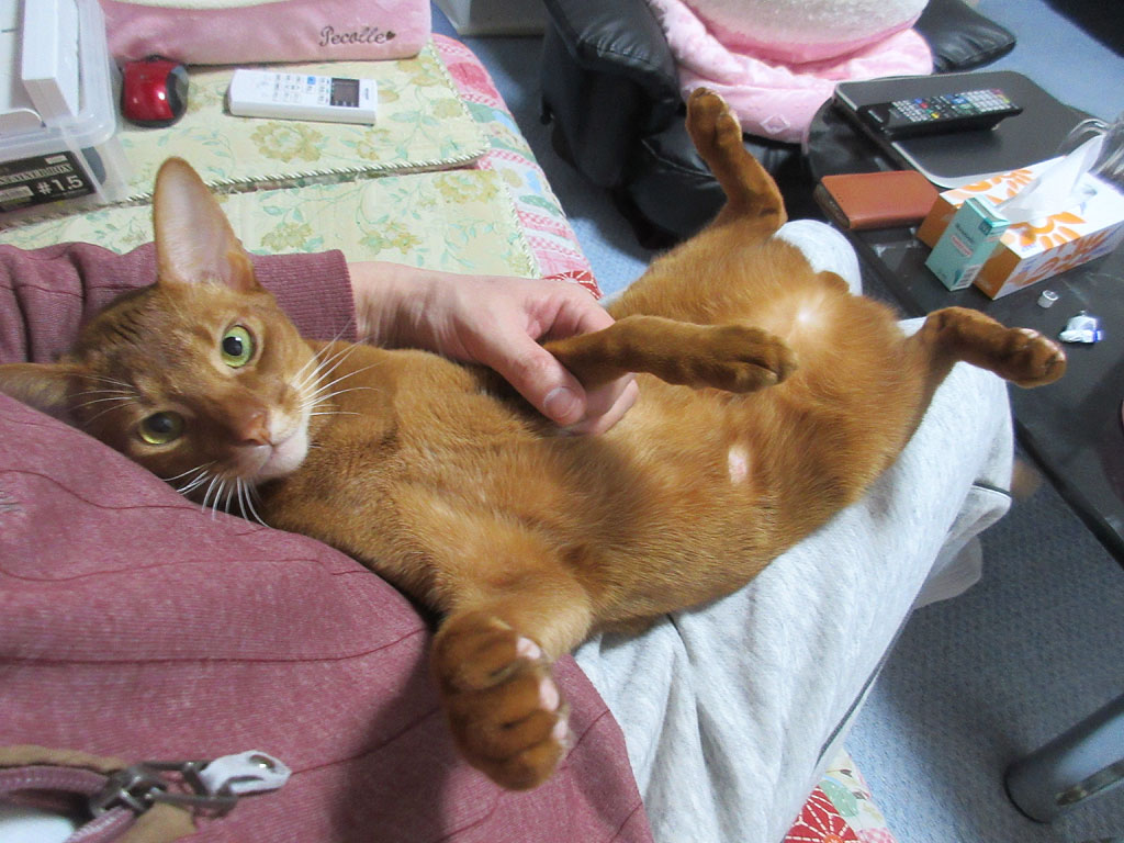 私がアビのすけを抑え付けると、やんちゃなアビのすけもよく分かっていて、観念して、諦めモードのアビのすけになるのです…、お利口さん…。