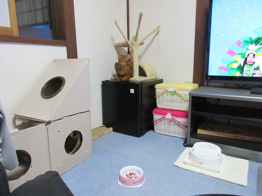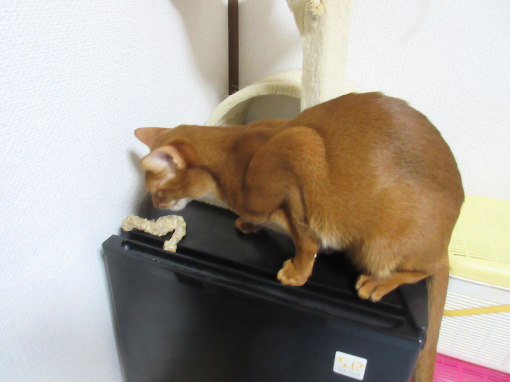 元気なアビのすけに逆戻り。そして、きれいにアビのすけのゲロの掃除を終えると、アビのすけはゲロを吐いたこの場所が気になるのか、ずっとこの場所にいて…、アビのすけ、何をしてるのん…?