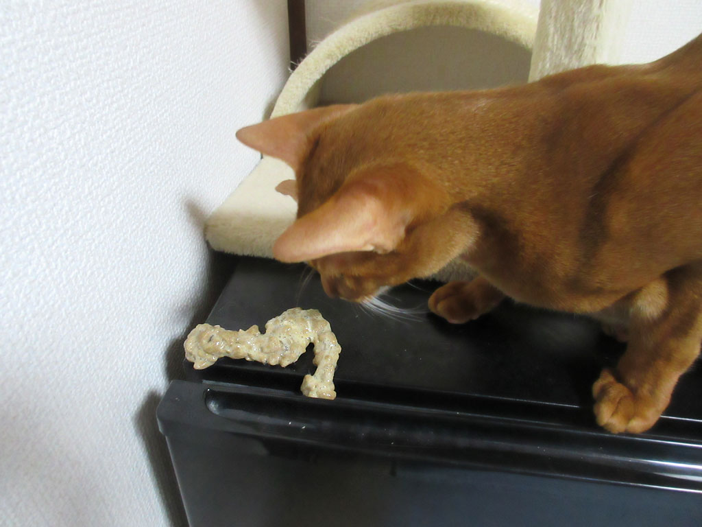 アビのすけがゲロを吐いた。昨日の晩の事ですが、猫たちに晩ご飯をあげて、2にゃんとも勢い良くご飯を食べていたので、私は安心してテレビを見ていたのです。