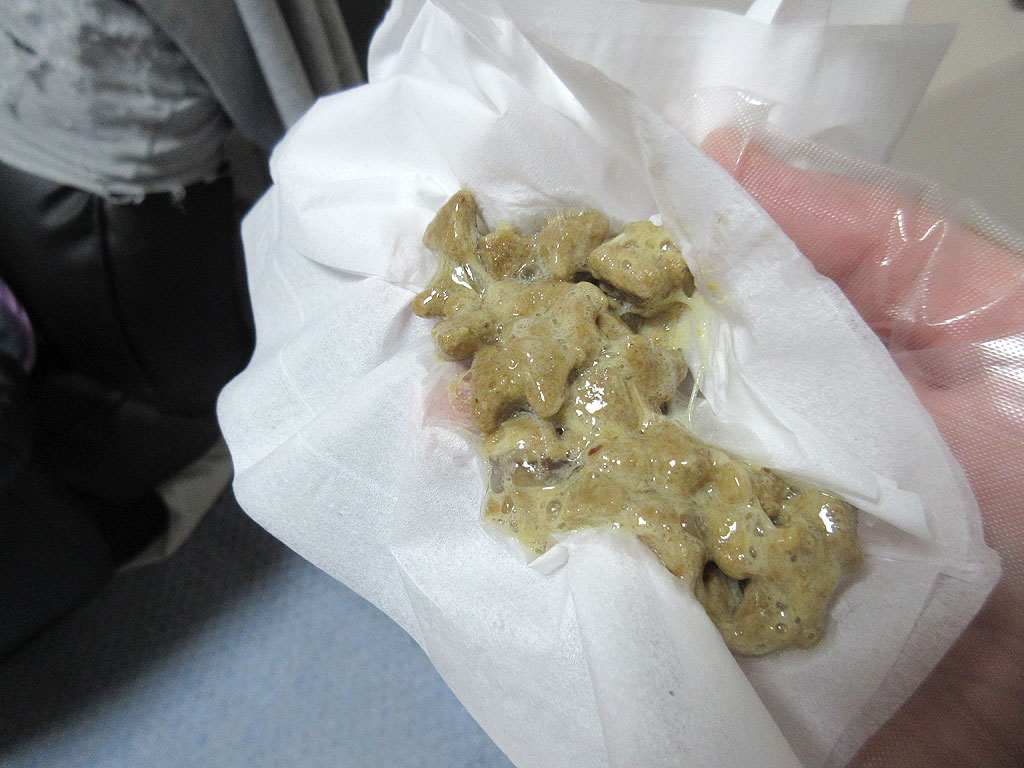 ボケまくりの写真。写真がボケてますが、これ、アビのすけのゲロにモザイクを掛ける為に、敢えて、ボカしたんじゃないですよ…、焦って撮ったので、写真がボケまくってるだけですよ…。