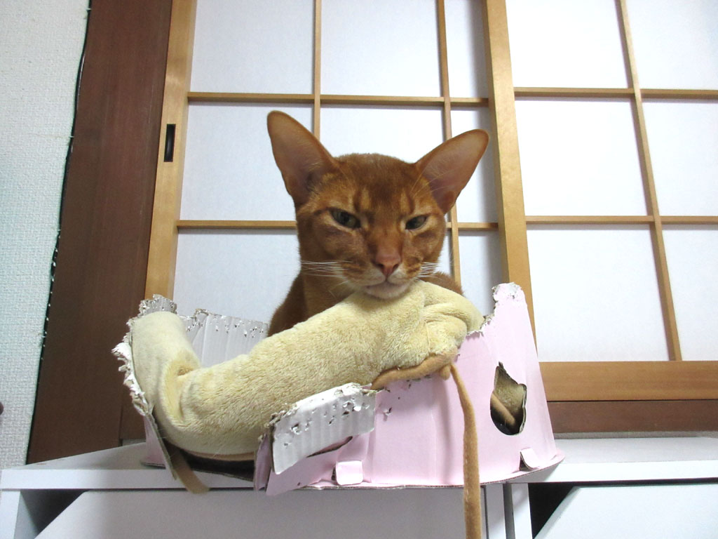 まずは、昨日の晩のアビのすけの様子から…、この写真を撮った時は、夜中の0時を回っていて、アビのすけはうつらうつらとしていて、その表情がとってもかわいかったので、デジカメを構えたのですが、アビのすけは目を覚ましてしまったのです…、残念…。